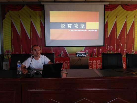7月12日到7月13日,实践队首先深入郝家湾村,通过入户访谈和填写问卷的形式进行调研,实地观察农情、村情、民情,了解当地贫困状况、致贫原因和贫困人口的需求。其次相继召开了以王宏富院长和董淑琦老师主持的农业科技座谈会和脱贫攻坚政策宣讲,会上分别简要介绍了功能农业与杂粮产业的发展以及国家脱贫攻坚的各项政策。